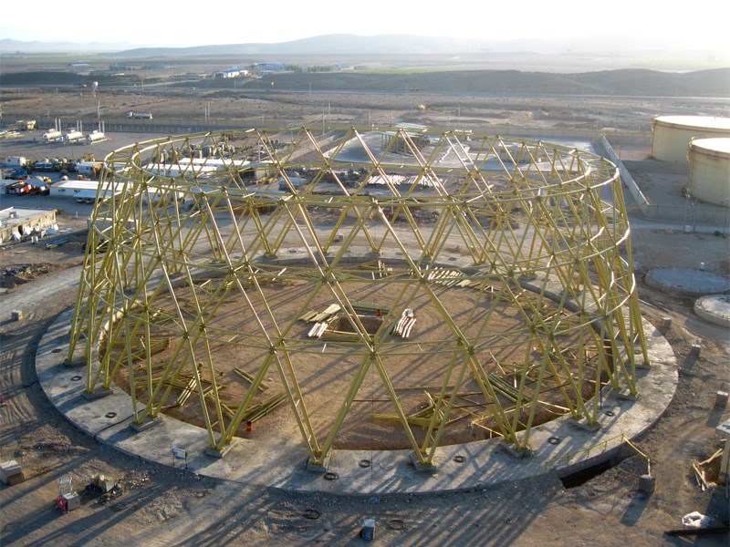 برج های خنک کننده نیروگاه جهرم از نوع برج های Heller می باشد که با سازه فلزی طراحی و اجرا می شود. سازه این برج ها از نوع سازه های فضاکار مشبک دو لایه بوده و الـمـان های آن ترکیبی از پروفیل و قوطی می باشد که با اتصال خاص برای این پروژه طراحی و نوآوری شده است.
