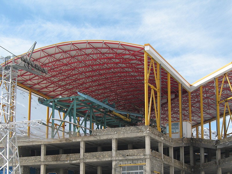 این سازه فضاکار از نوع چلیکی دو لایه بوده و زیربنایی معادل 2520 متر مربع را پوشش داده است که به دلیل قابلیت پیش ساخته بودن و نصب سریع، مناسب برای شرایط سخت اقلیمی می باشد.