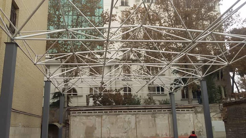 مدرسه فتح شاهد یکی از مدارس بنام پسرانه در مقطع متوسطه، واقع در منطقه 3 محدوده پاسداران تهران می باشد. مسئولیت طراحی و ساخت سازه فضاکار این مدرسه، با مساحت تقریبی 220 متر مربع، به عهده شرکت سان (سازه های افق نور) بوده است. در این سازه فضاکار، یک شبکه فضاکار دو لایه دوشیبه با طرح مربع روی مربع به کار گرفته شده و بر روی ستون های فولادی به ارتفاع 5 متر قرار گرفته است. ضخامت سازه مذکور 1.4 متر بوده و پوشش استفاده شده برای این سالن از نوع ساندویچ پانل می باشد.