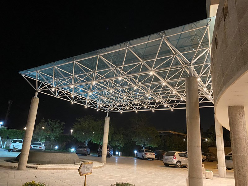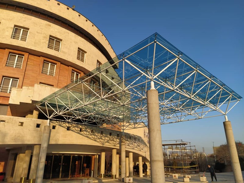 سازه ی سردر ورودی هتل بزرگ زنجان یک سازه ی فضکار دو لایه مربع روی مربع بوده که بر روی ستون های بتنی قرار گرفته است. برای پوشش شیشه ای آن از سیستم اسپایدر استفاده شده که بر روی گوی های لایه ی فوقانی شبکه فضاکار نصب گردیده اند.