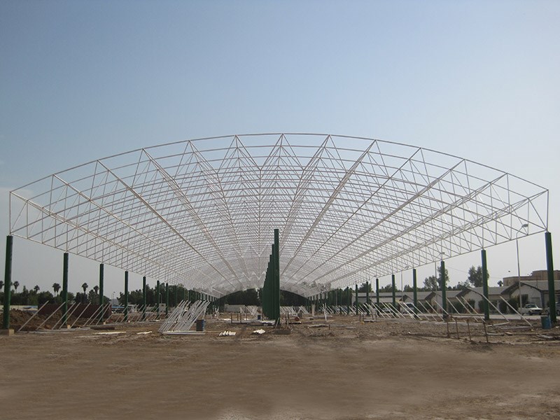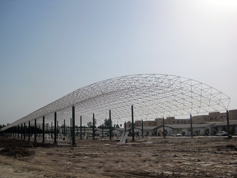 پروژه قطار شهری اهواز شامل طراحی و اجرای سالن تعمیرات قطار بوده که با سیستم سازه فضاکار قوسی دو لایه طراحی و اجرا گردیده است. برای پوشش این پروژه از ساندویچ پانل کبیر پانل استفاده شده است.