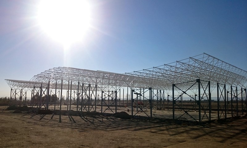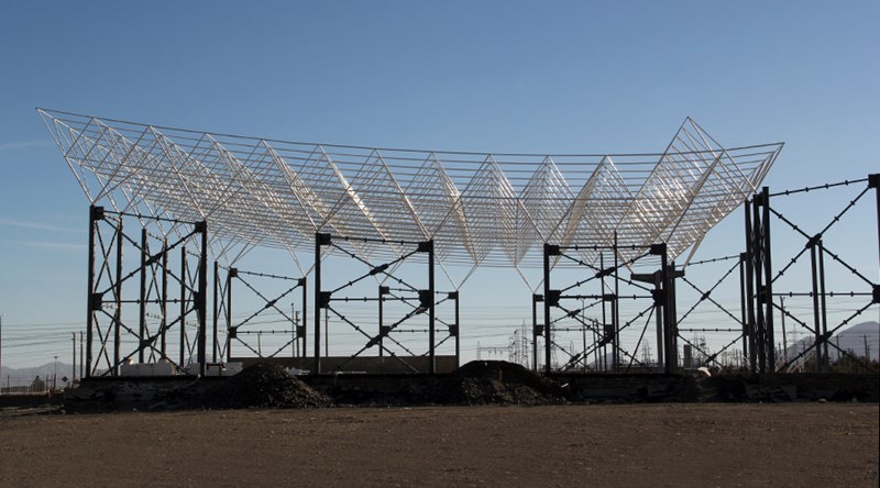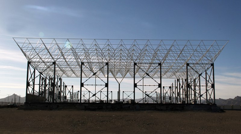 سیستم بکار گرفته شده در این سازه، شبکه دو راهی روی دو راهی بوده و اتصال ستون ها به شبکه فضاکار توسط اعضا سرستون انجام شده است، که این امر علاوه بر زیبایی، باعث توزیع بهتر نیروها از ستون به شبکه خواهد شد.