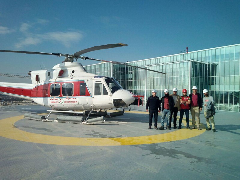 شرکت سان سه مورد هلی پد در پروژه بازار بزرگ ایران (ایران مال) طرح و اجرا نموده است؛ هلی پد فوق دارای قطر 26 متر بوده و از المان های و اتصالات سازه فضاکار ساخته شده است.