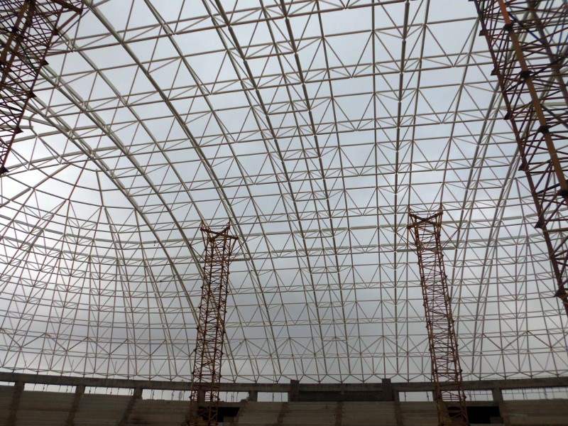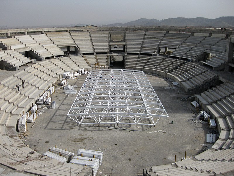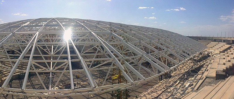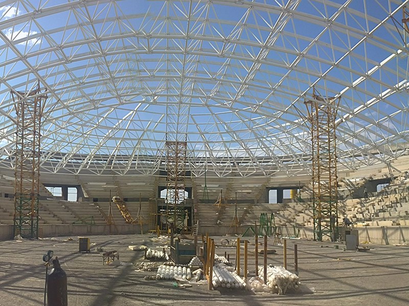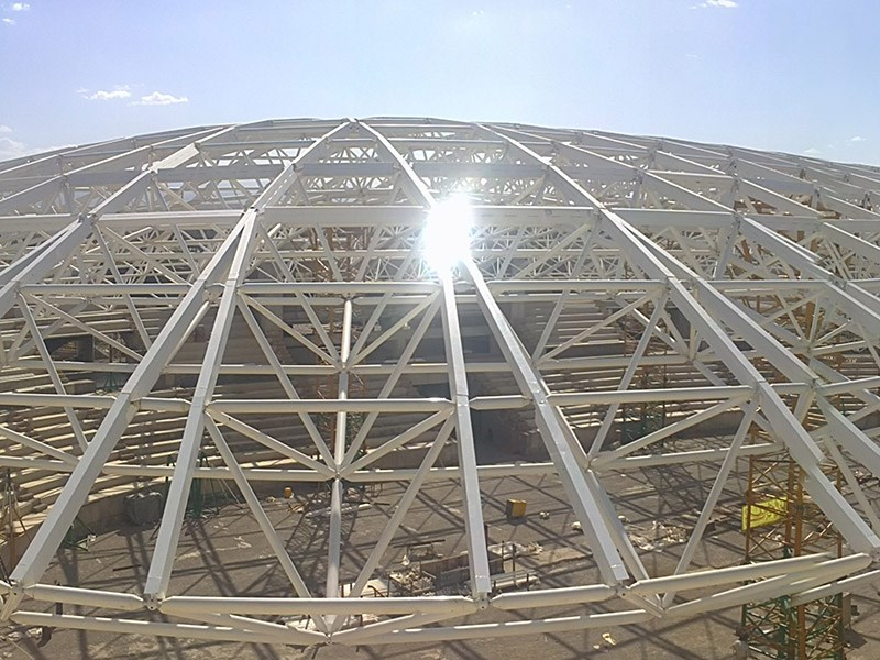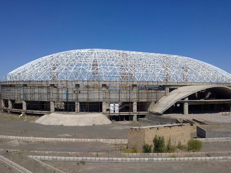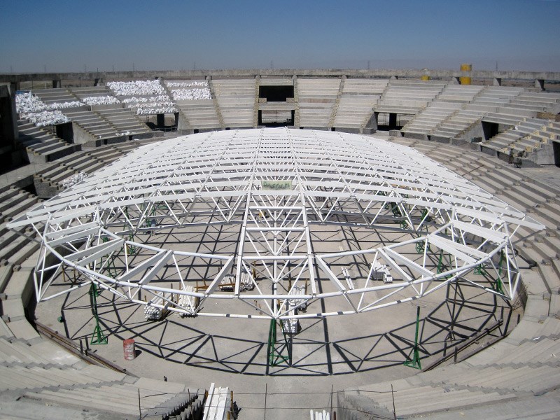 این پروژه شامل طراحی، ساخت و نصب پوشش سالن ورزشی چند منظوره 6000 نفره شهر مشهد بوده که با سیستم چلیک-گنبدی دو لایه طراحی و توسط پایه و جک های مخصوص بالابری آن اجرا شده است.