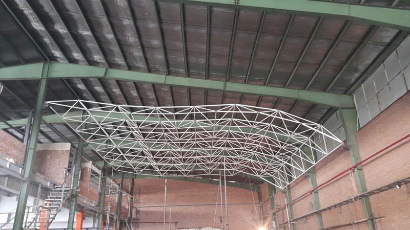 پروژه سقف سازه فضاکار گروه صنعتی کرمان خودرو در سالن اصلی تعمیرات نمایشگاه، در جاده مخصوص واقع گردیده است. در مجموع دو سقف با مجموع مساحت 650 متر مربع احداث شده است. یکی از تاشه ها از شبکه دو لایه فرم آزاد ایجاد شده و دیگری شبکه دولایه می باشد. از این سازه ها به منظور زیبا سازی فضای داخلی سالن ها مورد استفاده قرار گرفته است.